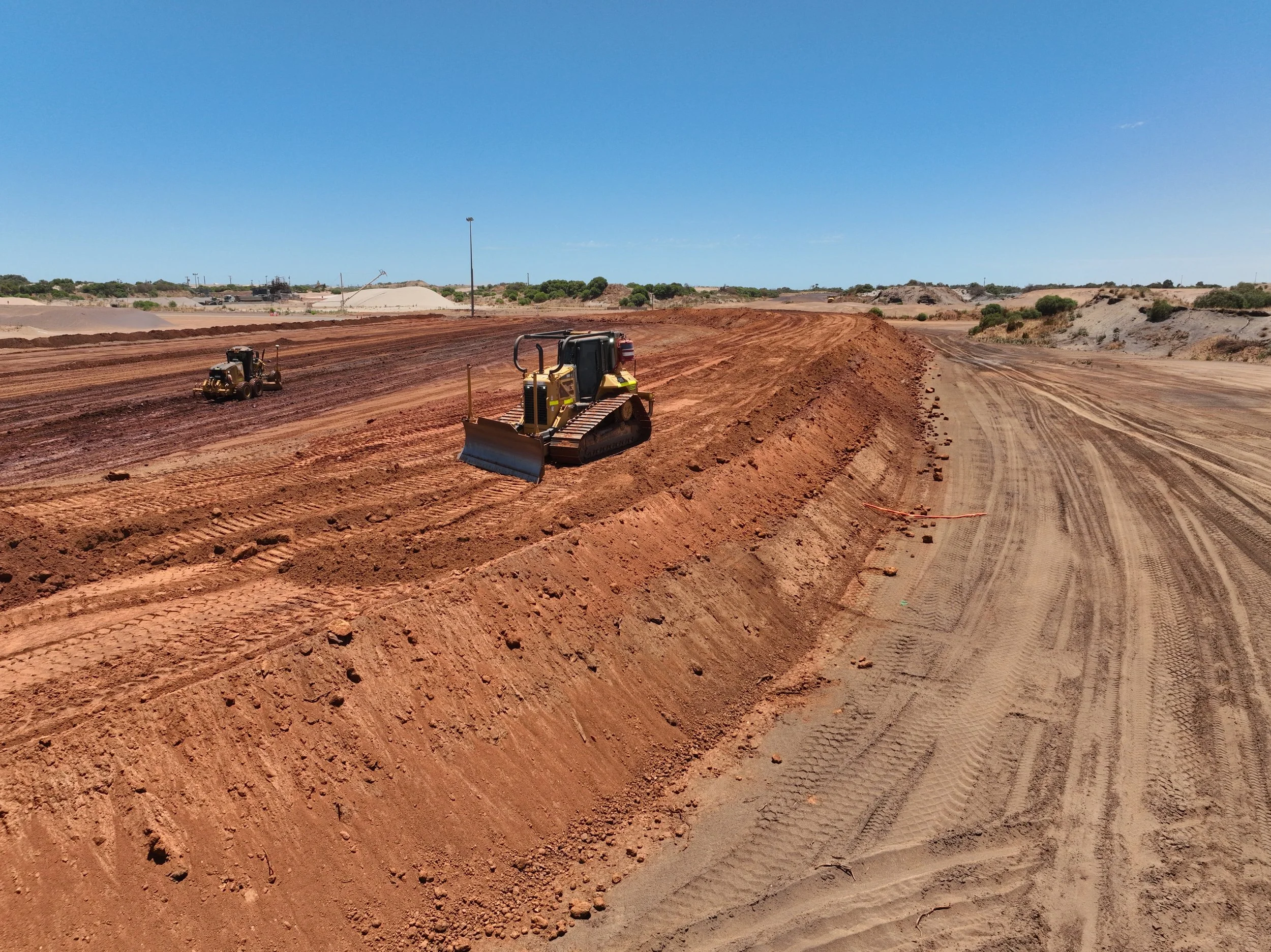 Associated with the integration of their new Balranald minesite, and to support additional feedstock storage capacity at their Narngulu Mineral Separation Plant, we were contracted by Iluka Resources to construct an extension to their HMC (Heavy Mineral Concentrate) storage pad in Geraldton, WA.